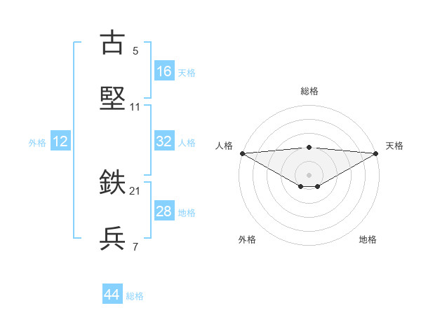 古堅 鉄兵さんを姓名の画数から五運を鑑定