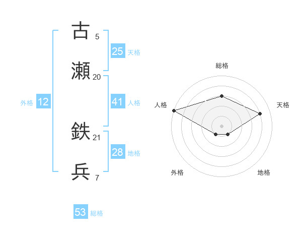 古瀬 鉄兵さんを姓名の画数から五運を鑑定