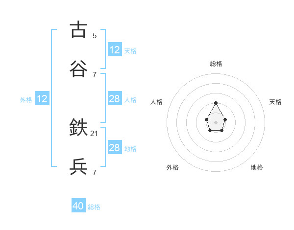 古谷 鉄兵さんを姓名の画数から五運を鑑定
