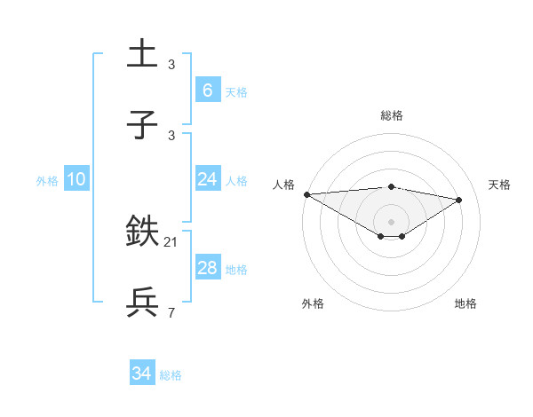 土子 鉄兵さんの総格は34画の2点!