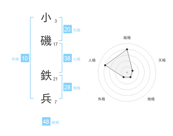 小磯 鉄兵さんの総格は48画の4点!
