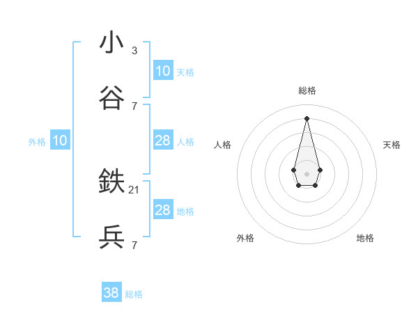 小谷 鉄兵さんの総格は38画の4点!