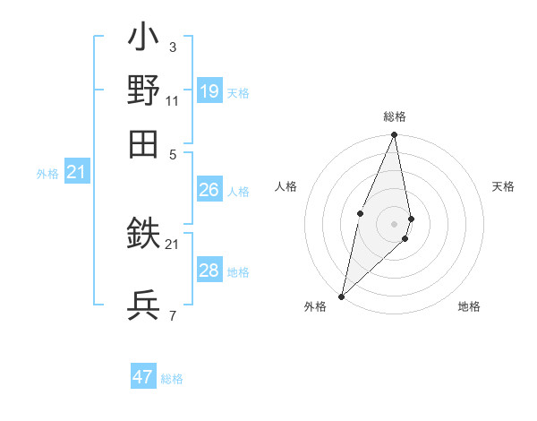 小野田 鉄兵さんを姓名の画数から五運を鑑定