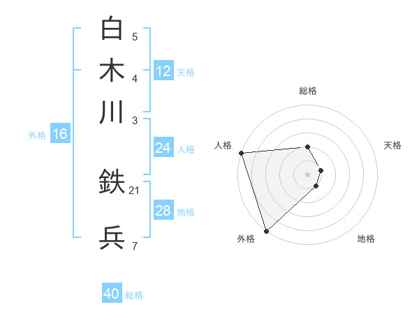 白木川 鉄兵さんを姓名の画数から五運を鑑定