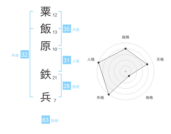 粟飯原 鉄兵さんの総格は63画の4点!