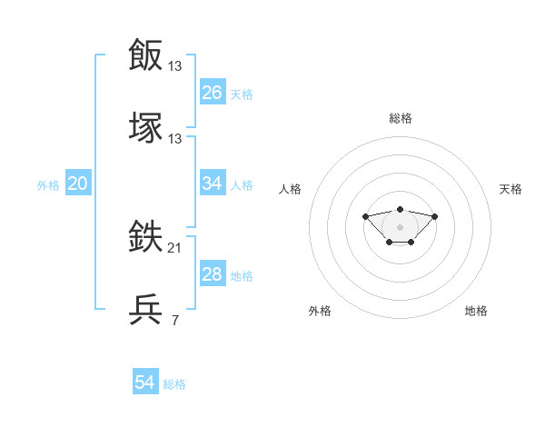飯塚 鉄兵さんの天格は26画の2点!