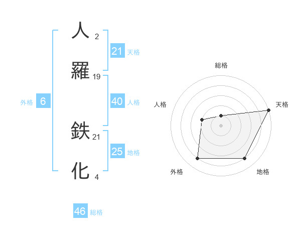 人羅 鉄化さんの天格は21画の5点!