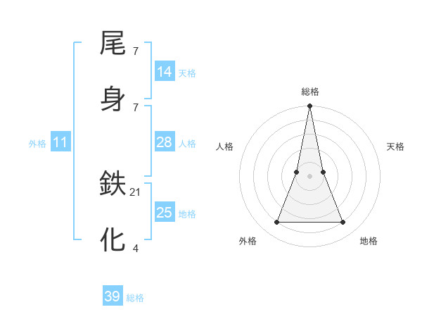 尾身 鉄化さんの総格は39画の5点!