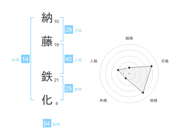 納藤 鉄化さんの総格は54画の1点!