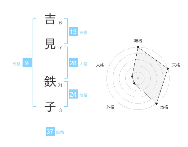 吉見 鉄子さんを姓名の画数から五運を鑑定