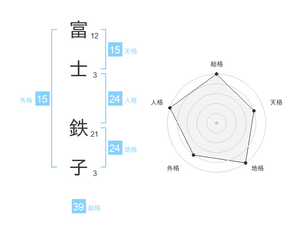 富士 鉄子さんを姓名の画数から五運を鑑定