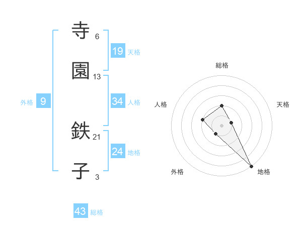 寺園 鉄子さんの地格は24画の5点!