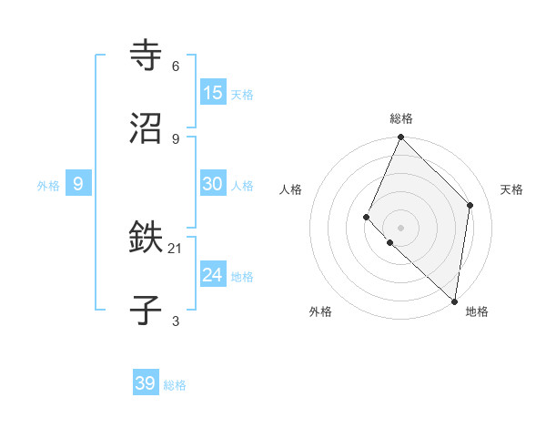 寺沼 鉄子さんを姓名の画数から五運を鑑定