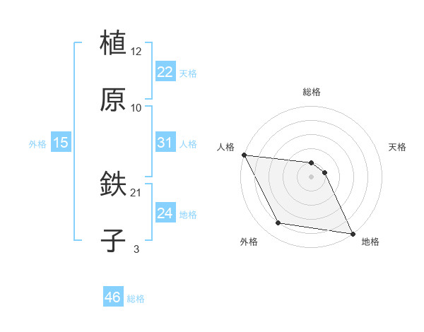 植原 鉄子さんを姓名の画数から五運を鑑定