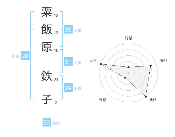 粟飯原 鉄子さんを姓名の画数から五運を鑑定