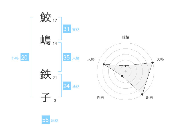 鮫嶋 鉄子さんを姓名の画数から五運を鑑定