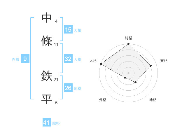 中條 鉄平さんの天格は15画の4点!