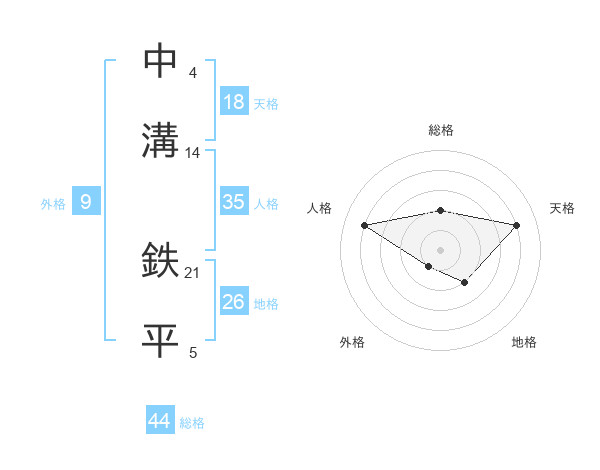 中溝 鉄平さんを姓名の画数から五運を鑑定