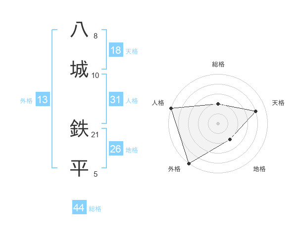 八城 鉄平さんの外格は13画の5点!