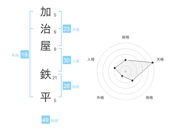加治屋 鉄平さんの天格は23画の5点!