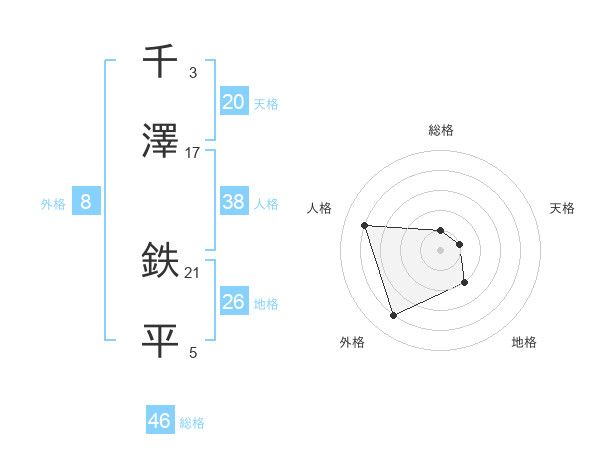 千澤 鉄平さんの天格は20画の1点!