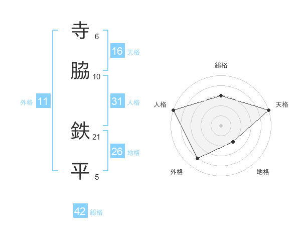 寺脇 鉄平さんを姓名の画数から五運を鑑定