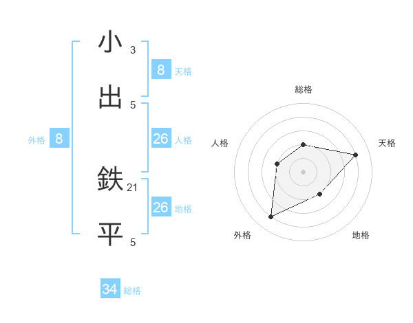小出 鉄平さんを姓名の画数から五運を鑑定