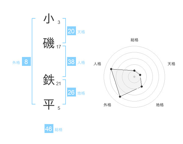 小磯 鉄平さんの総格は46画の1点!