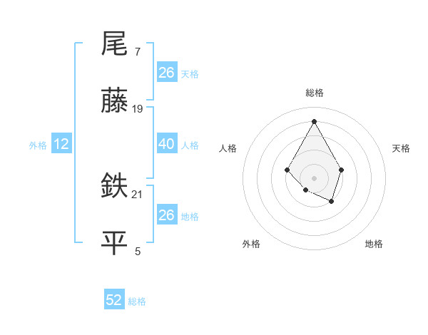 尾藤 鉄平さんの総格は52画の4点!
