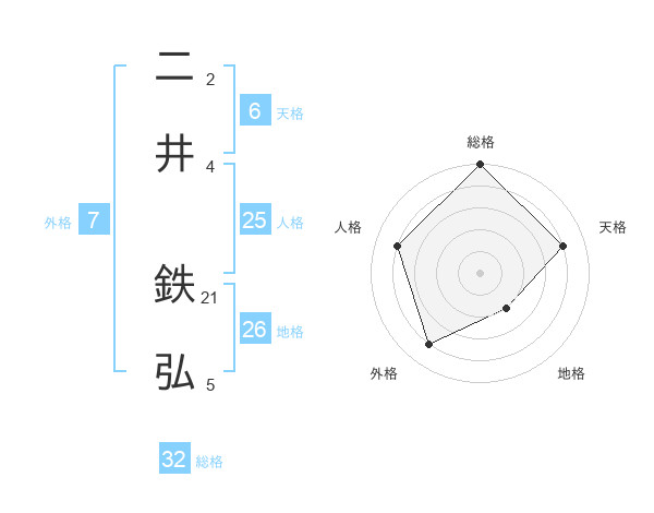 二井 鉄弘さんを姓名の画数から五運を鑑定