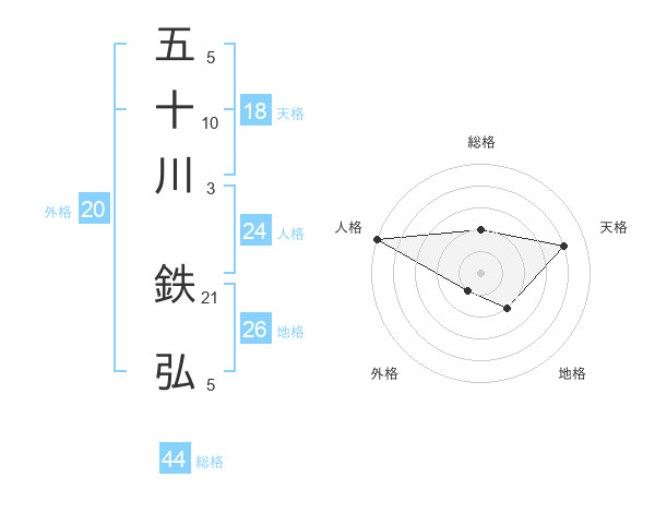 五十川 鉄弘さんを姓名の画数から五運を鑑定