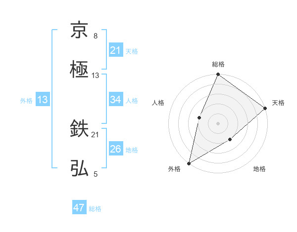 京極 鉄弘さんを姓名の画数から五運を鑑定