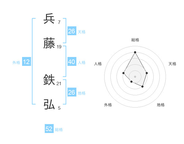 兵藤 鉄弘さんを姓名の画数から五運を鑑定