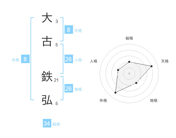 大古 鉄弘さんの天格は8画の4点!