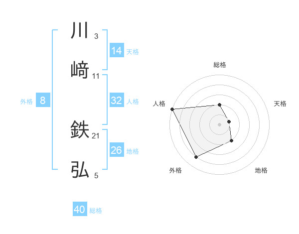 川﨑 鉄弘さんの天格は14画の1点!