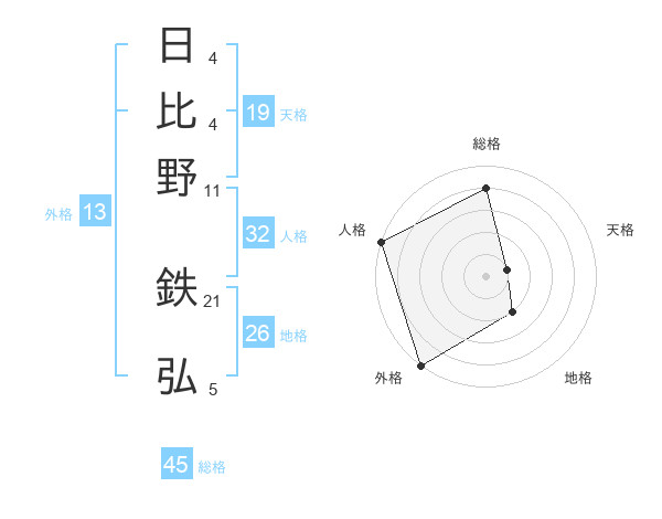 日比野 鉄弘さんを姓名の画数から五運を鑑定