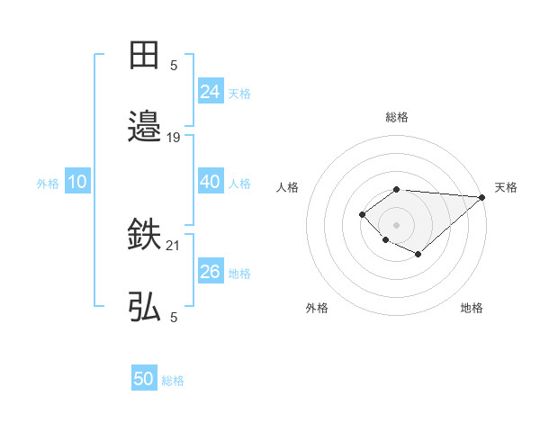 田邉 鉄弘さんを姓名の画数から五運を鑑定