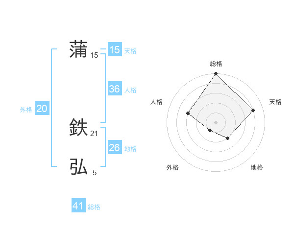 蒲 鉄弘さんの総格は41画の5点!