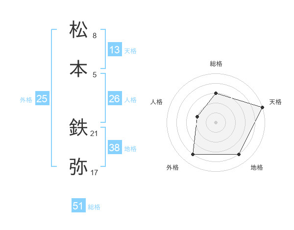 松本 鉄弥さんの総格は51画の3点!