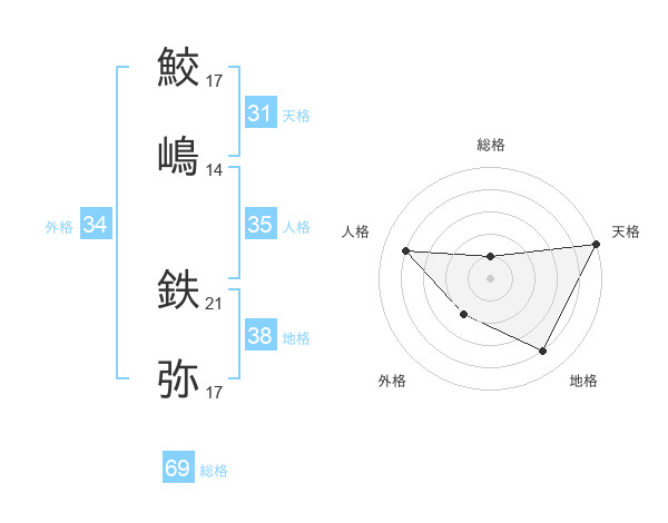 鮫嶋 鉄弥さんの総格は69画の1点!