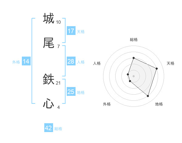 城尾 鉄心さんの天格は17画の4点!