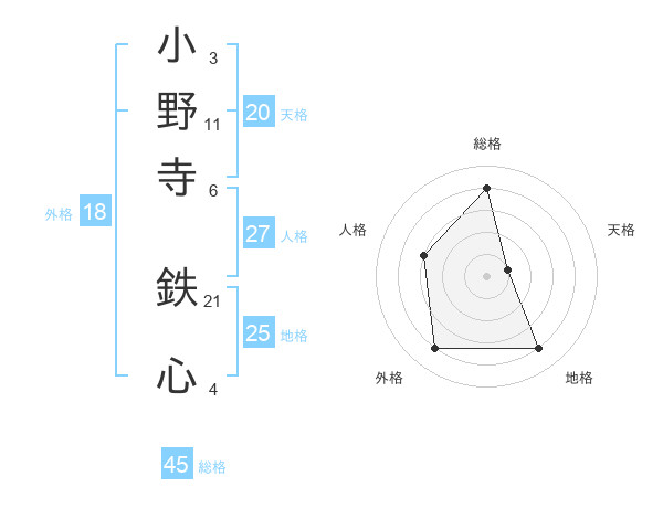 小野寺 鉄心さんの天格は20画の1点!