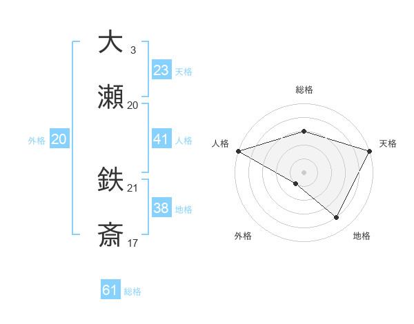 大瀬 鉄斎さんを姓名の画数から五運を鑑定