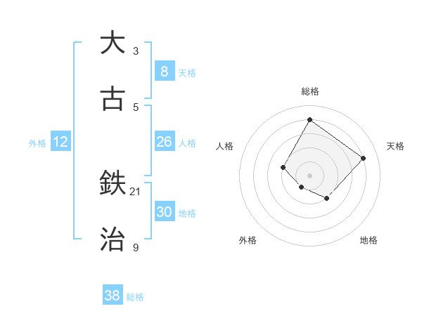 大古 鉄治さんを姓名の画数から五運を鑑定