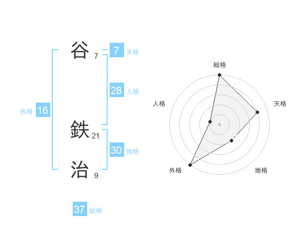 谷 鉄治さんを姓名の画数から五運を鑑定