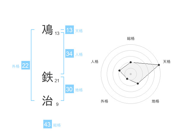 鳰 鉄治さんを姓名の画数から五運を鑑定