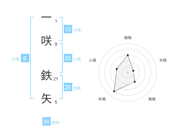 一咲 鉄矢さんの外格は6画の4点!