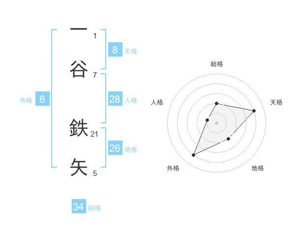 一谷 鉄矢さんを姓名の画数から五運を鑑定