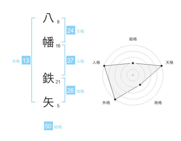 八幡 鉄矢さんの総格は50画の2点!