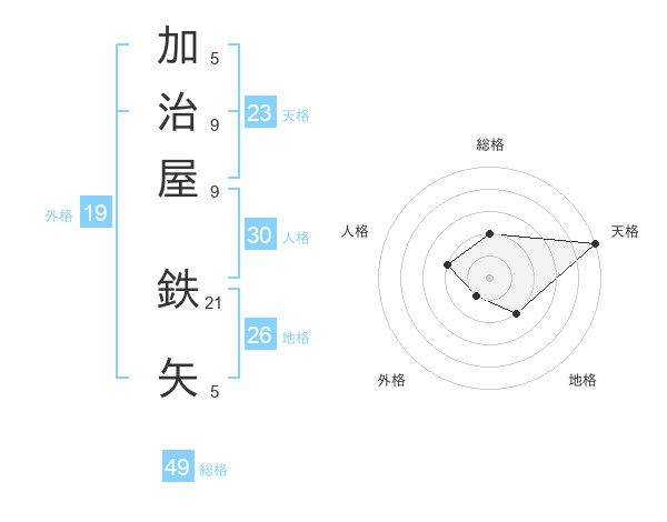 加治屋 鉄矢さんを姓名の画数から五運を鑑定